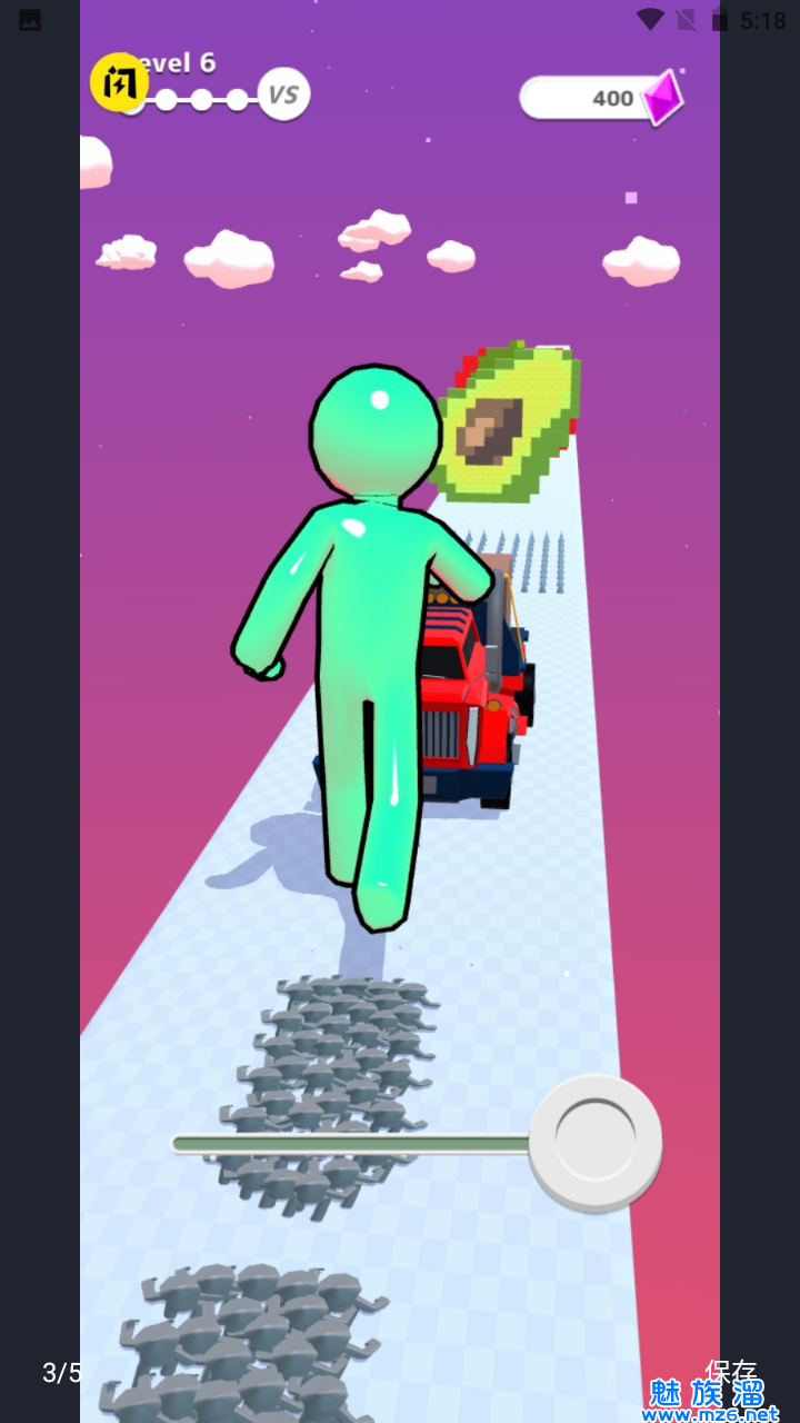 3、熟练使用角色的能力,自由变换大小来躲避危险障碍物,任何障碍物都不足为惧。