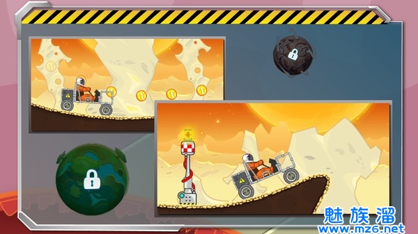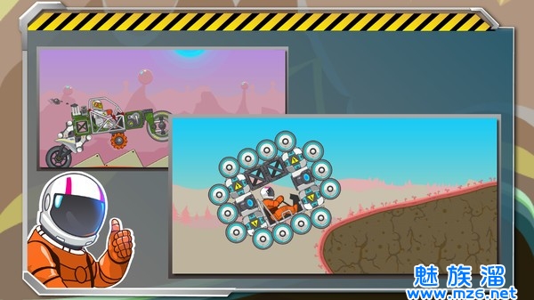 1、游戏拥有着十分新颖的主题,我们玩家不仅能够在地上进行驾驶,还可以飞上太空。