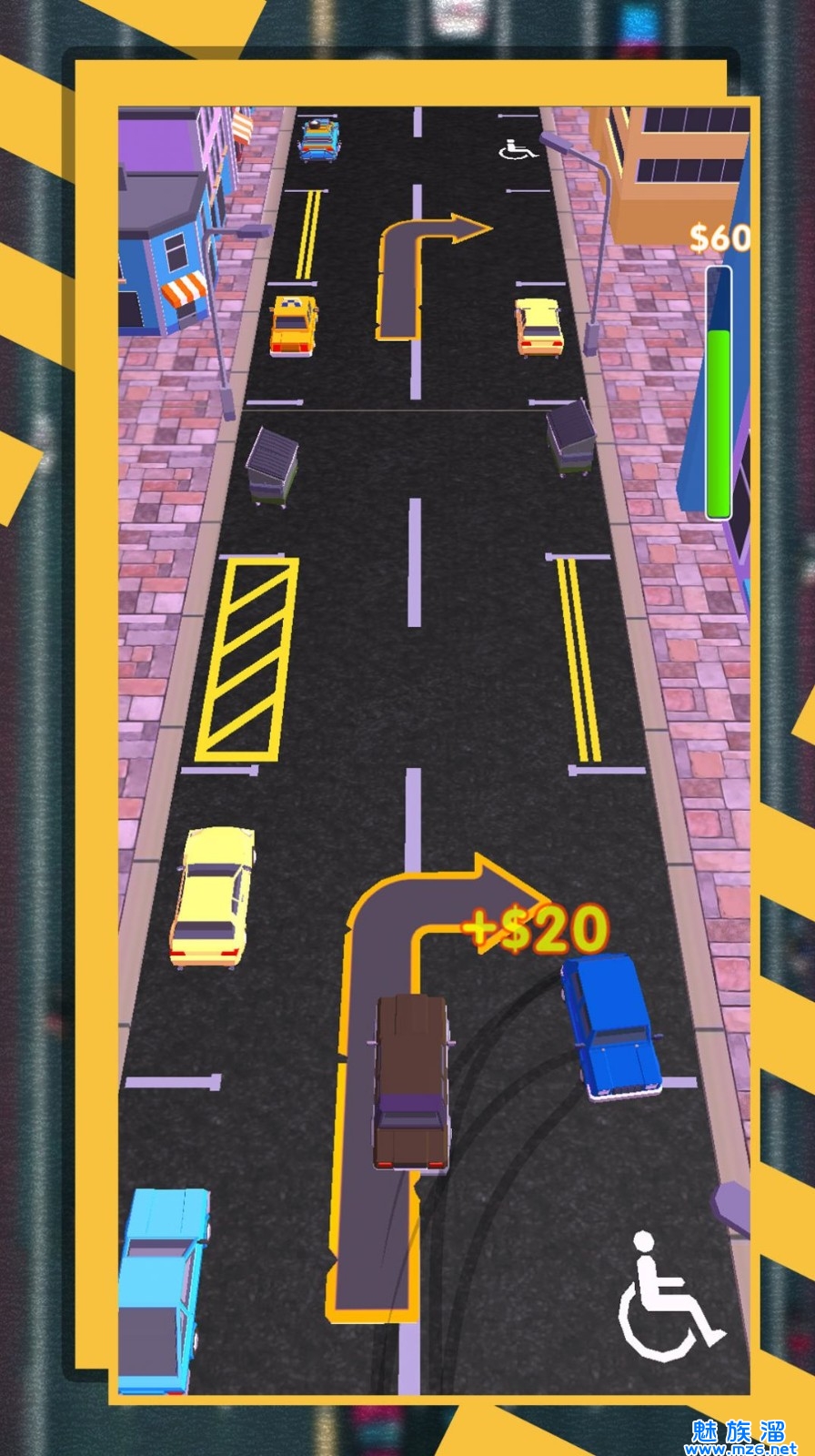 科目三模拟驾驶是一款汽车模拟漂移游戏。让玩家在找车位的过程中尽情的享受漂移的激情,真实的碰撞和驾驶体验。注意要避免禁停的车位,不要撞到别的车哦!在两边马路车与车的空挡中漂移停车,让自己的小车往对应方向甩尾,停车入位。
