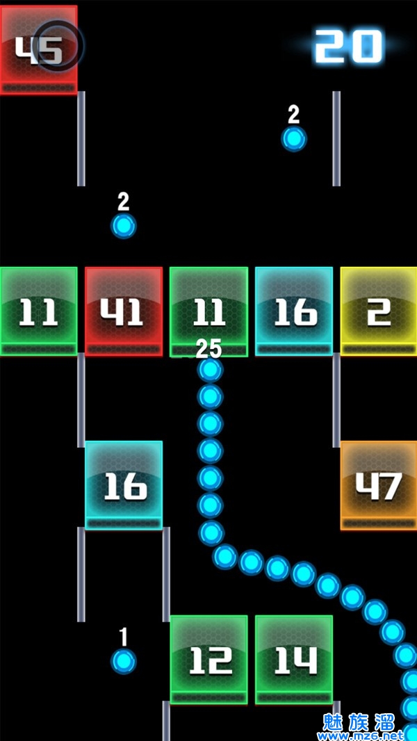 贪吃蛇打方块游戏是一款非常有趣的闯关游戏,玩家需要操控一只卡通小蛇在不断的闯关,游戏里有很多的吃的东西,小蛇吃了吃多少就代表它长了几节,操控它前进,玩家的反应速度要快,不然拦路的方块数量太多,小蛇会被撞没的,喜欢的伙伴们快来下载玩玩吧!