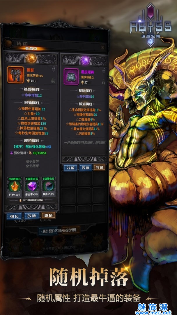 角色使用的技能是可以进行搭配的,还有不同的装备需要收集,装备独特自我