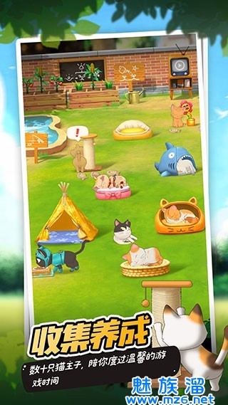 收集布置猫咪玩具,打理猫咪后院,让它成为猫咪们游玩的天堂。