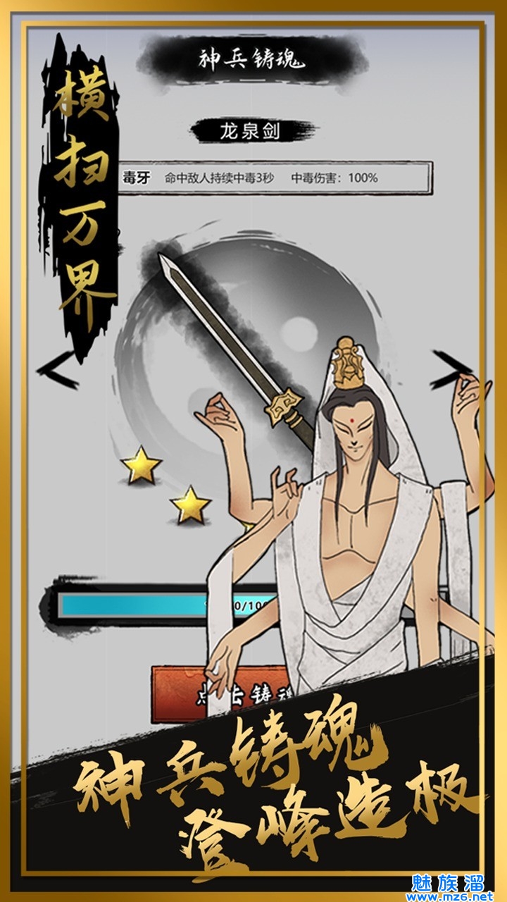 《横扫万界》这是一款非常神秘的古风式的Roguelike,动作,修仙,角色扮演游戏。玩家还可以在《横扫万界游戏安卓版》游戏里获得各种威力强大的武器,消灭敌人,并且可以提升和强化人物中各个角色的作用。感兴趣的朋友快来下载体验吧!