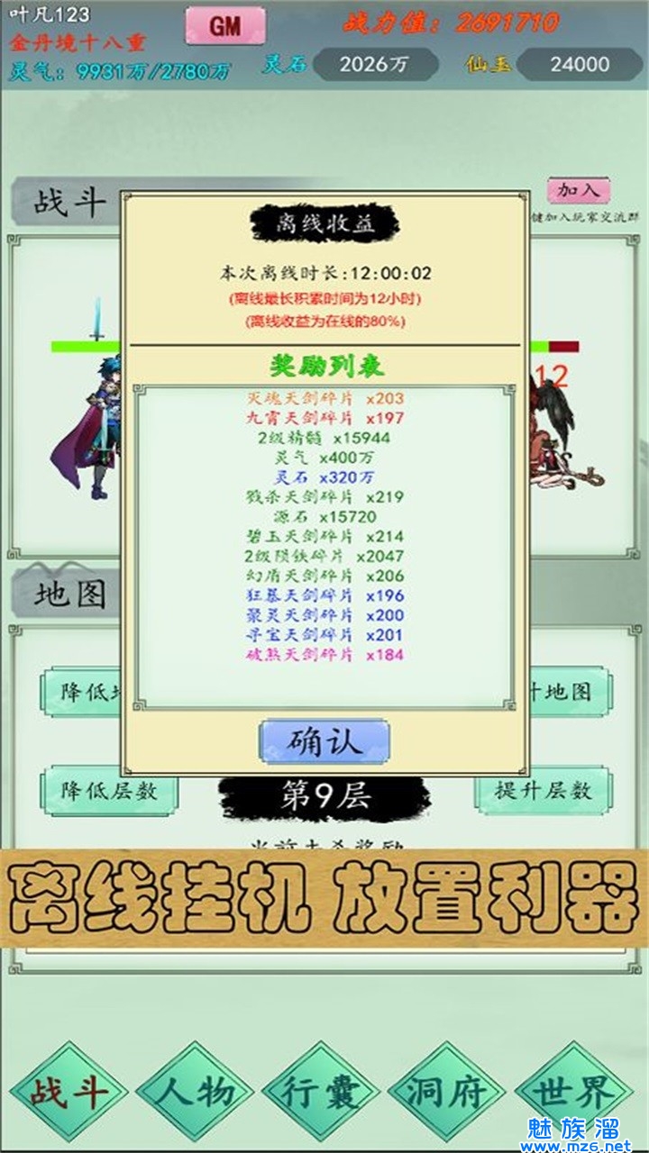 2、在线离线均能自动挂机闯关,彻底解放双手,真正做到纯放置挂机手游!