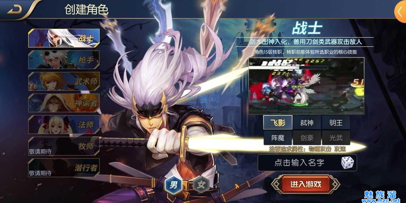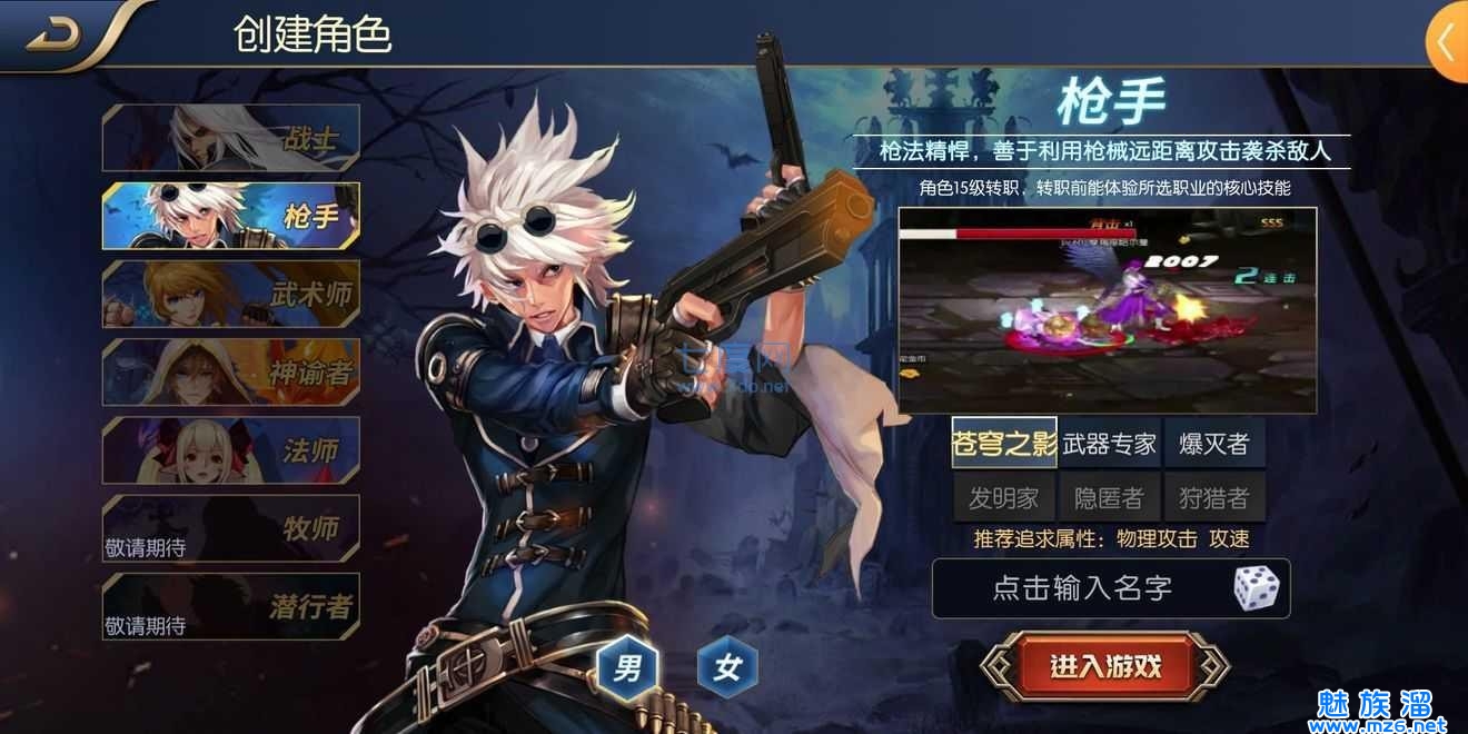 3、精彩的冒险才刚刚开始,选择你喜欢的英雄职业,不同的英雄拥有不同的特定职业
