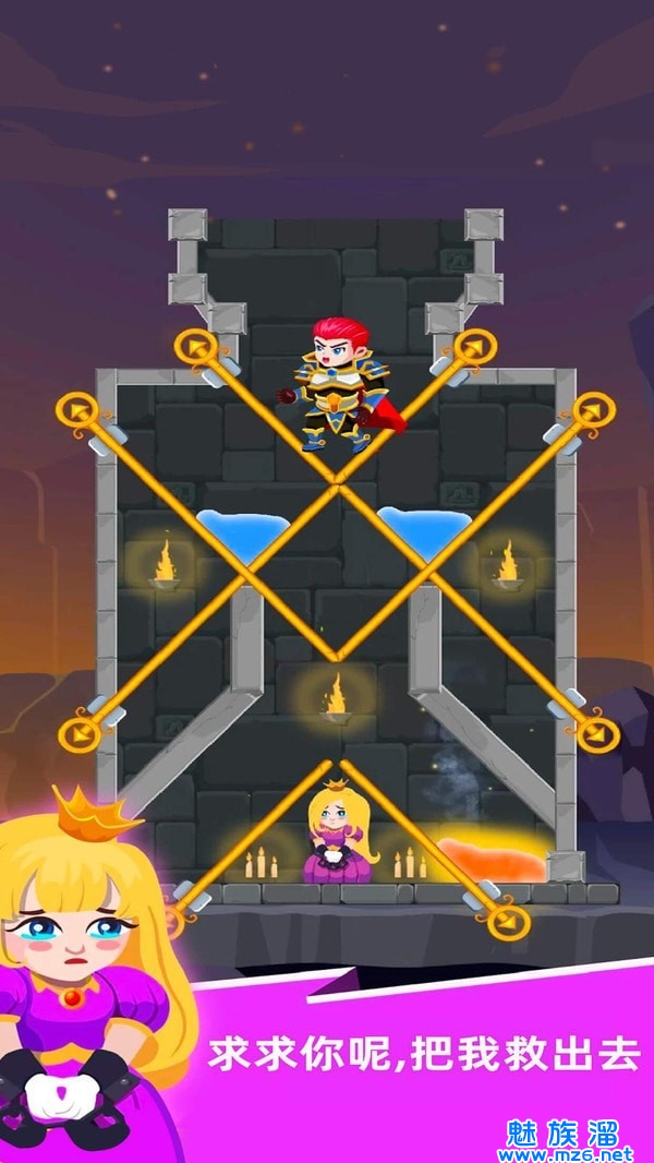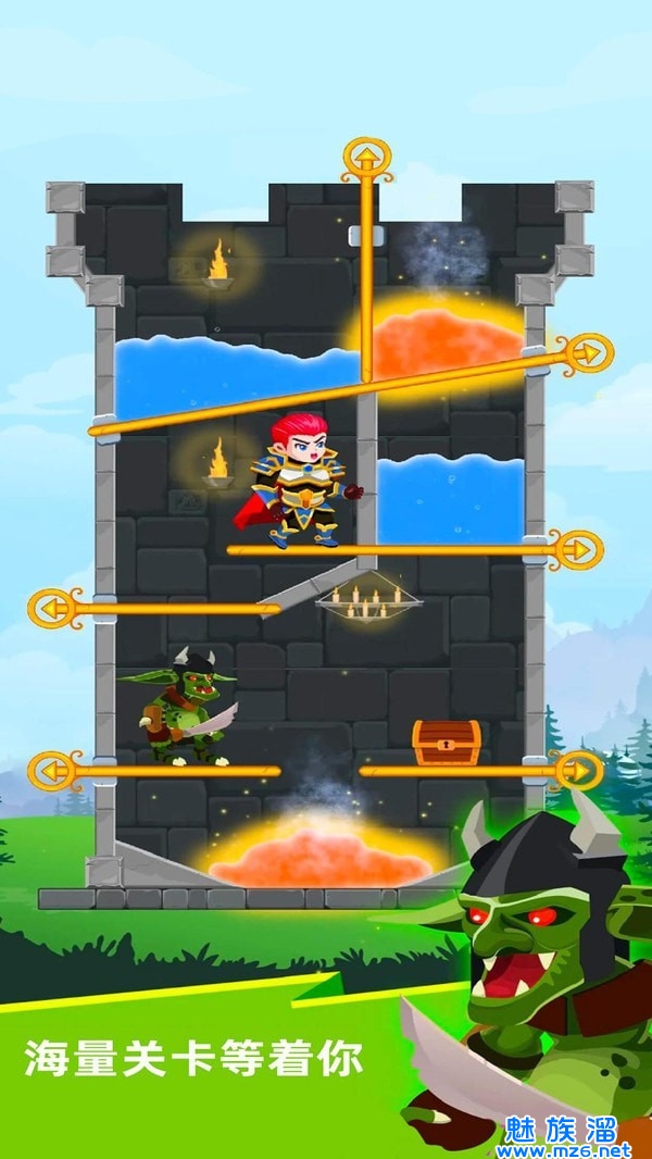 1、尝试用物理知识来让水流到火焰地带,通过不同的考验完成解谜任务。