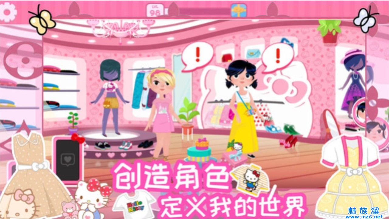 1、画风非常的唯美,成为凯蒂猫开设属于自己的时装,游戏玩法充满乐趣,自由经营自己的商店。