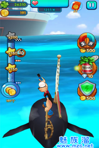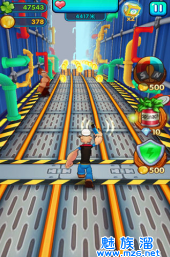 2.在游戏中扮演大力水手波派,通过跑酷的形式避免各种障碍物,解救自己喜欢的人。