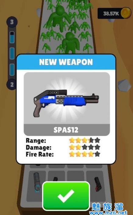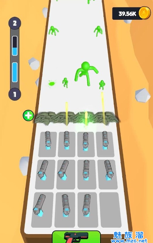 1、把相同的武器合并成步枪、霰弹枪等高级武器,帮你更快的消灭僵尸。
