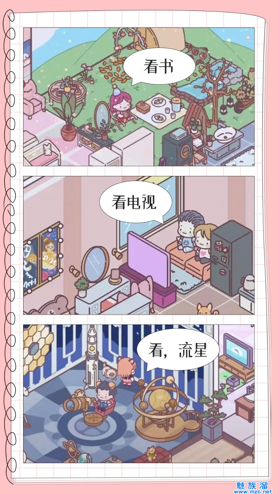 游戏场景包括客厅、花园、卧室和浴室等,每个场景都有大量装饰品可以购买。