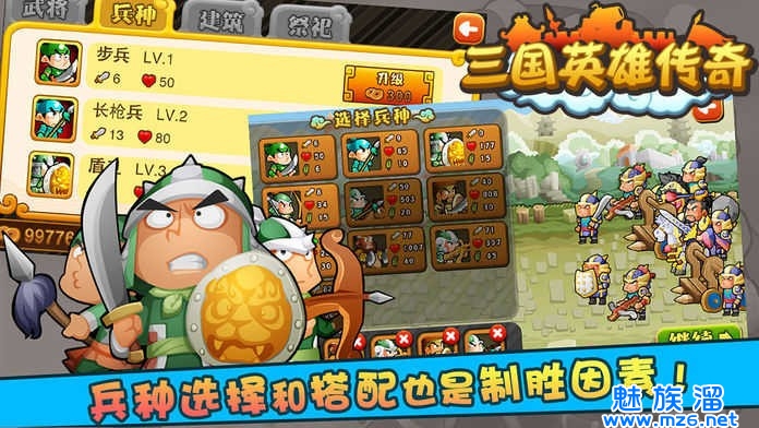 2、三十多种特色兵种,一起组成你的无敌军团,睥睨天下。