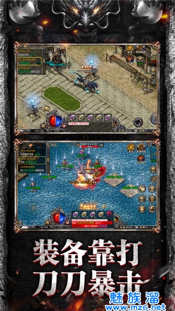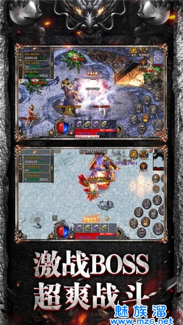 经典怀旧风格,王者称霸,疯狂刷boss,随机捡装备,获取大量物资,皇城争霸,自由对战。