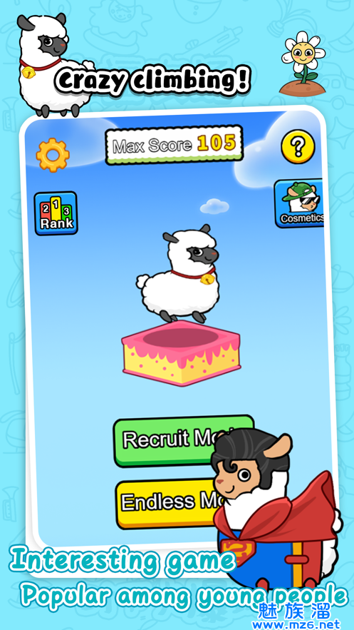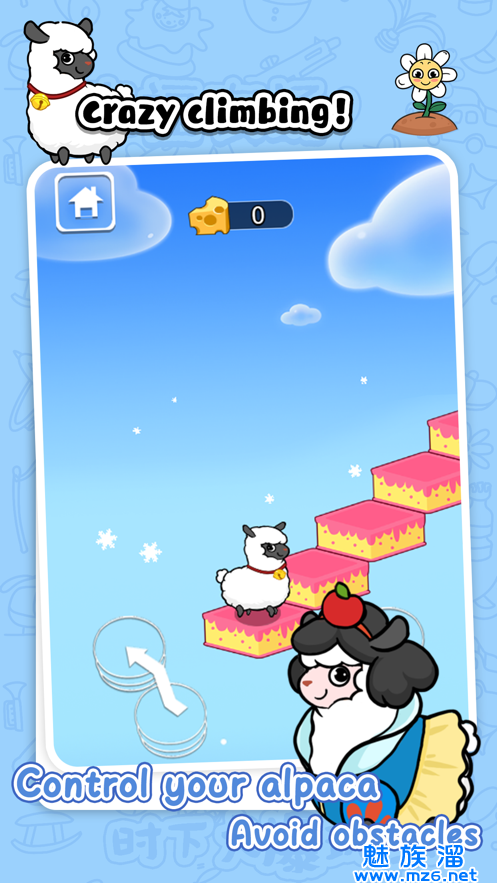 1、点击屏幕周围,让羊驼向左或向右跳。分数越高,台阶下降越快。你能通过多少关?