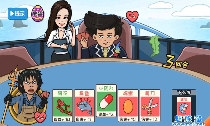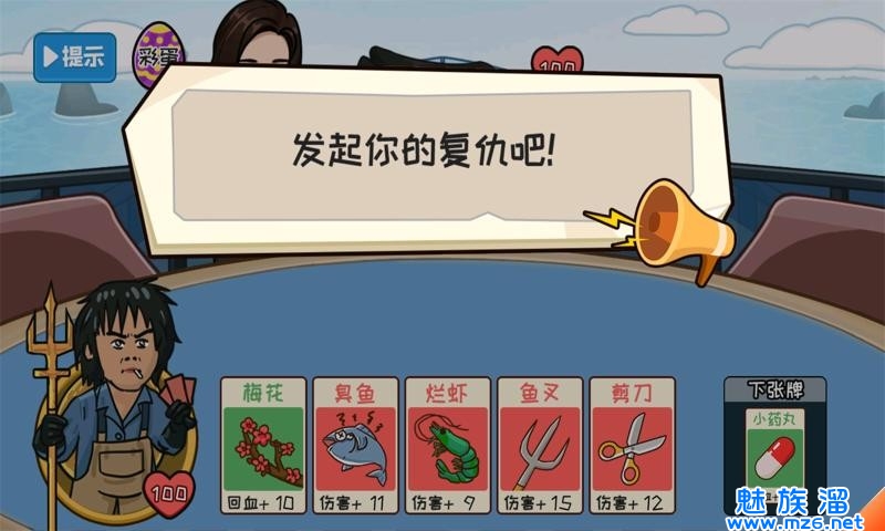 2、通过点击底部的卡牌向夏洛特发起攻击,开始复仇之路,抢回秋雅!