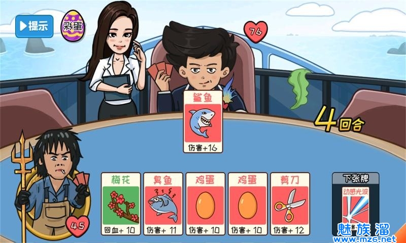 3、游戏采用回合制,对方先手,一轮结束继续轮流出牌。