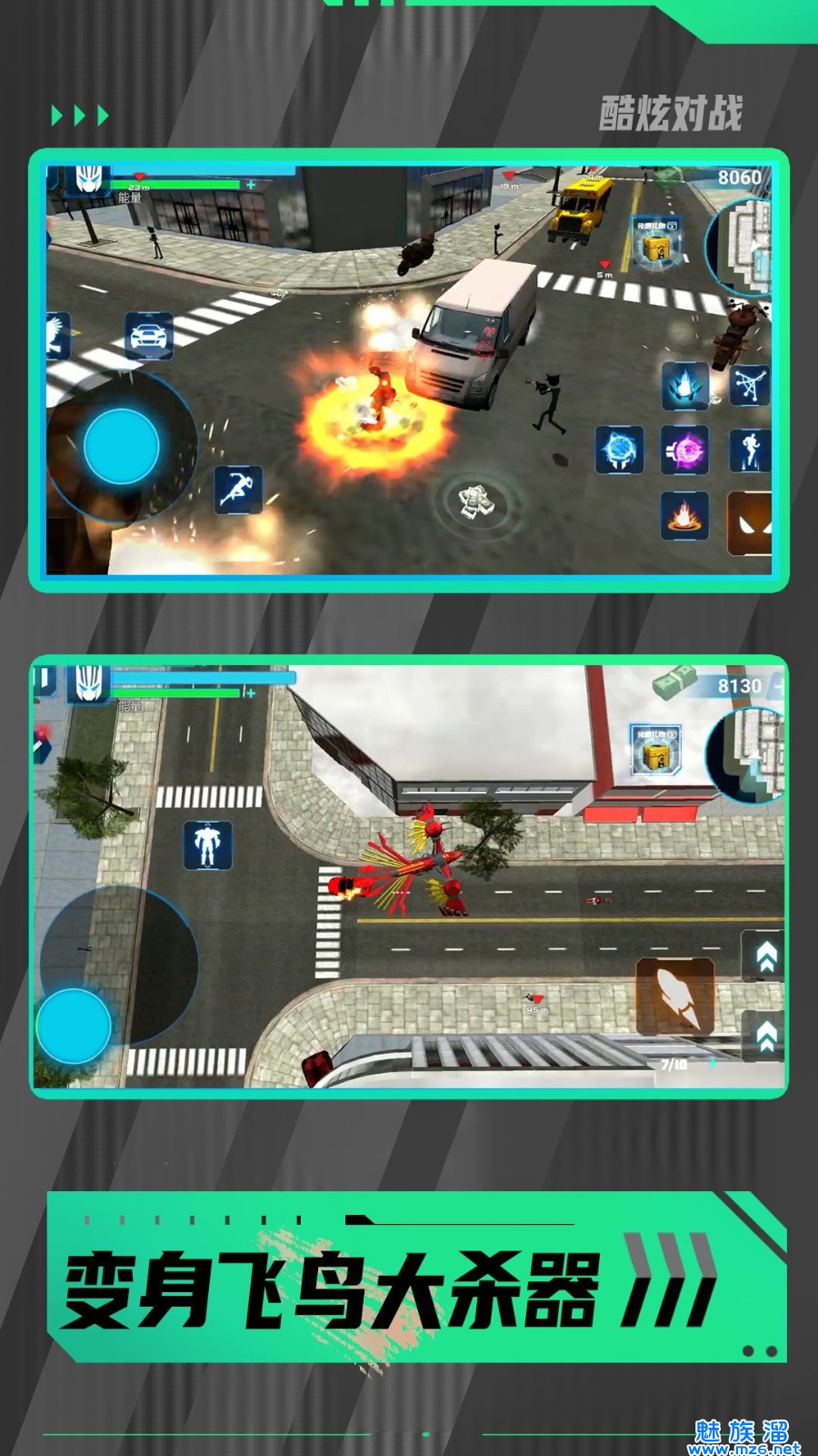 1、超炫的3D效果、超酷的人物造型,机器人帅气的动作,多变的玩法,给你一场炫酷的视觉盛宴;