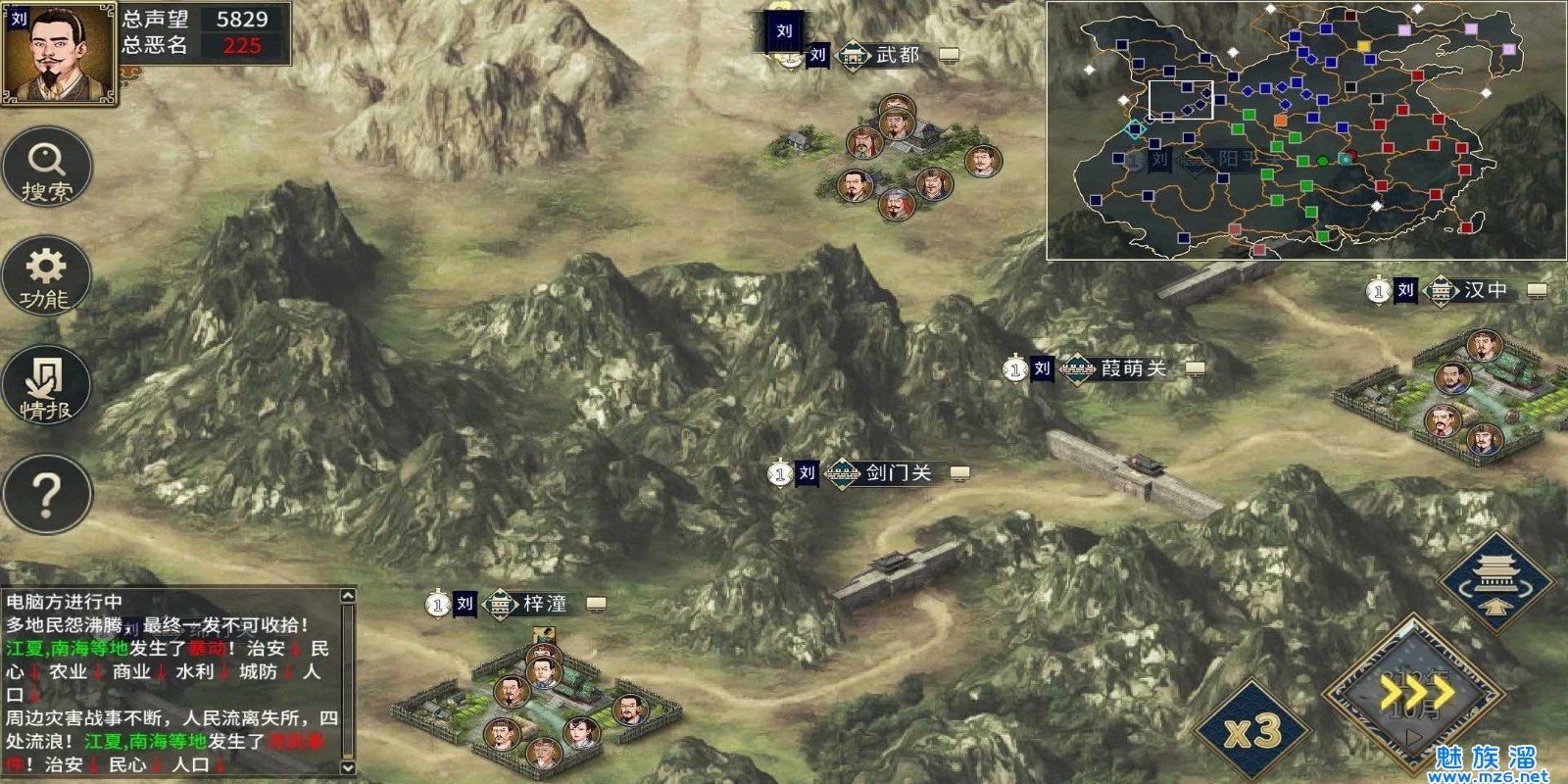 各种自然现象和事件灾害模拟出多灾多难的三国时期。