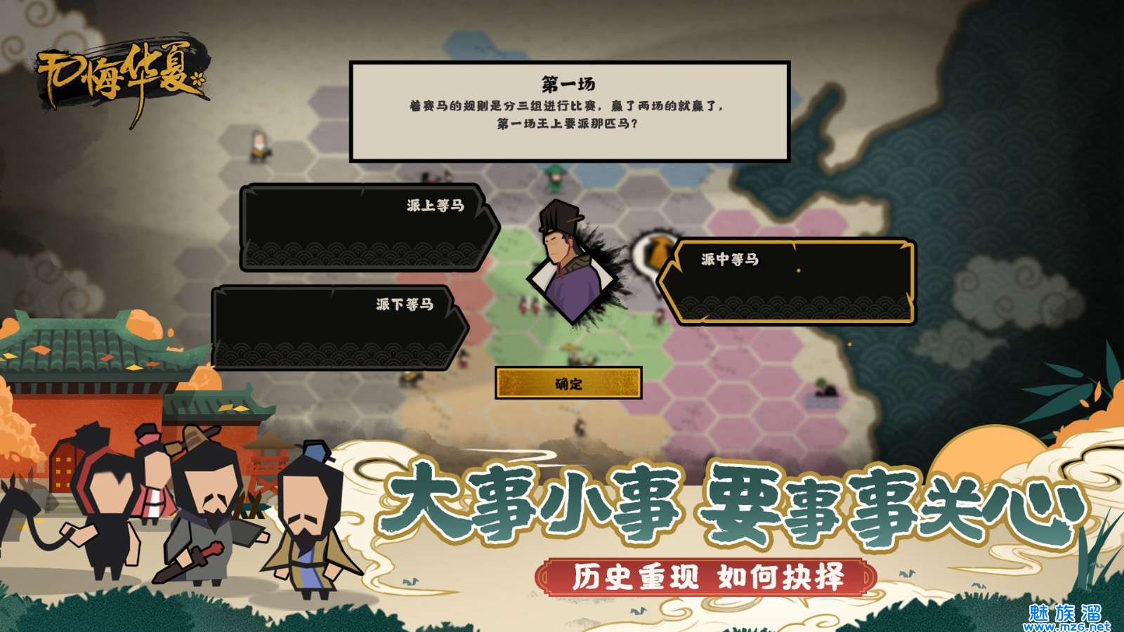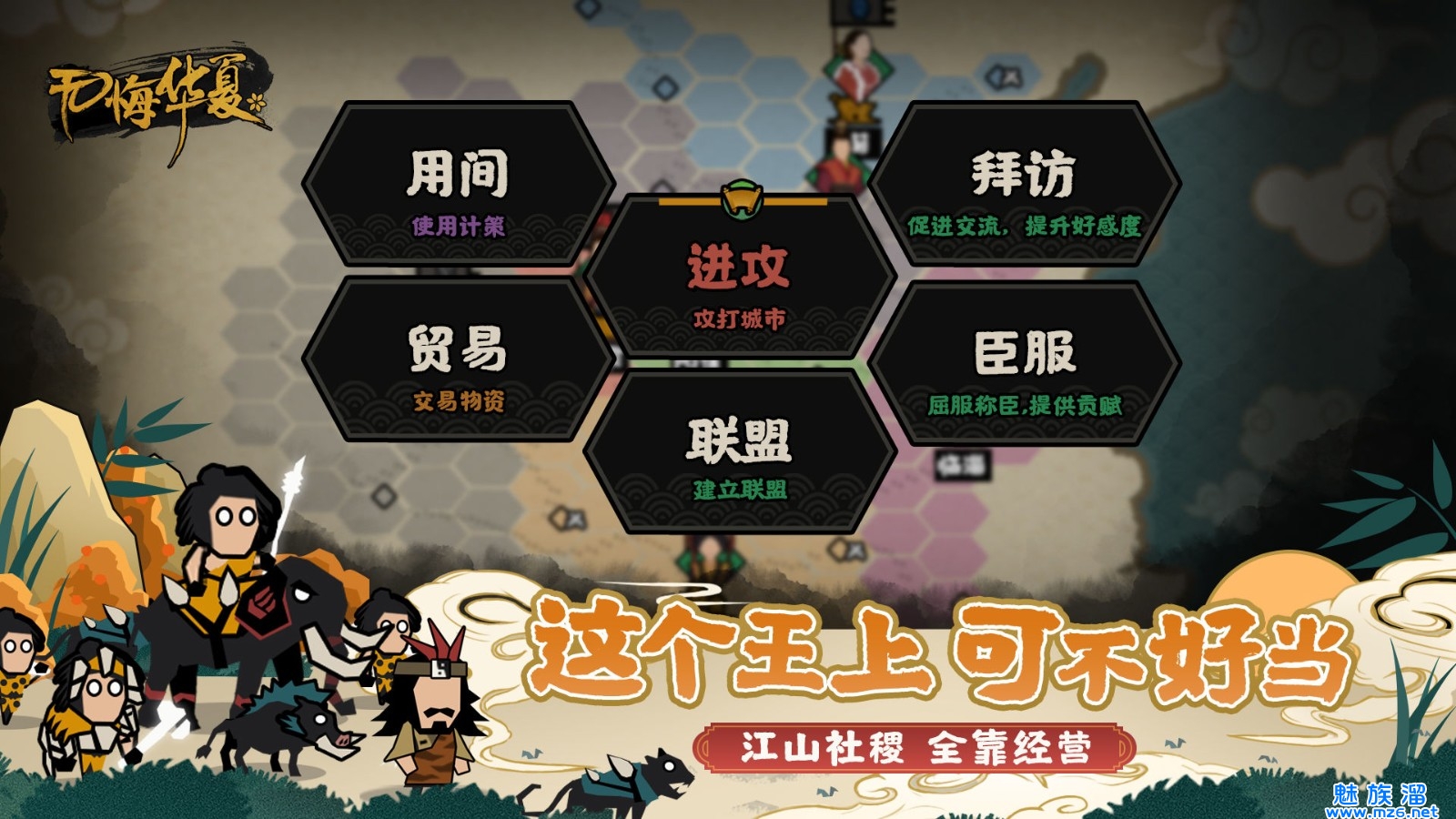 4、玩法最有意思的一点就是中途出现的随机事件,可以出去探索和扩张,以及通过权衡利害做出选择可以影响到华夏治 理,包括心,心军,腐 化,威望等等。