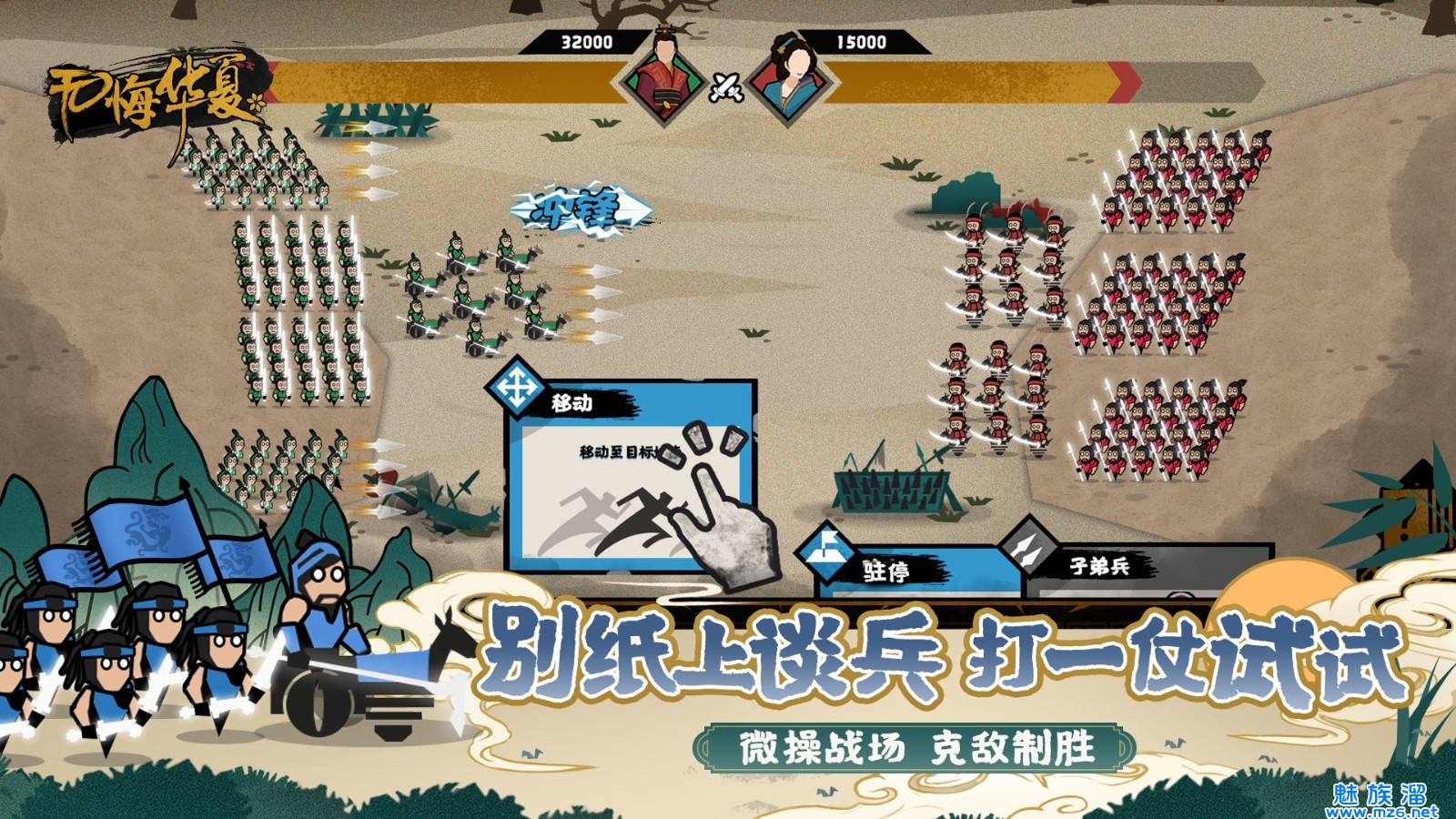 2、至于免不了的战斗,操作上非常简便快捷,直接拖动对应的移动和驻停的卡牌到对应的队伍上面就可以指挥了。