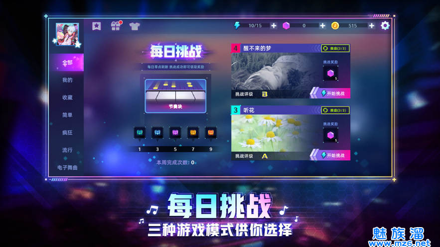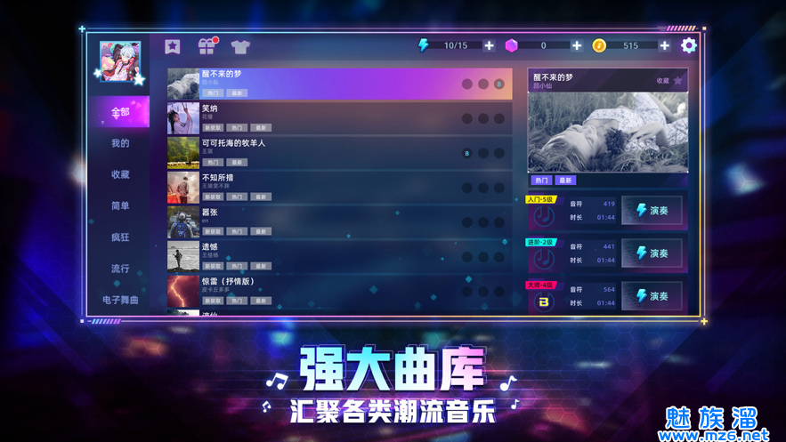 6、游戏包含了华语、粤语、日语等多种音乐的资源库,各种劲爆音乐不断更新,带给玩家的游戏体验感十足。