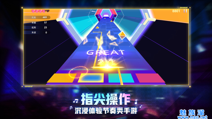 原创的节奏音乐,酷炫的特效和新颖的新颖玩法。