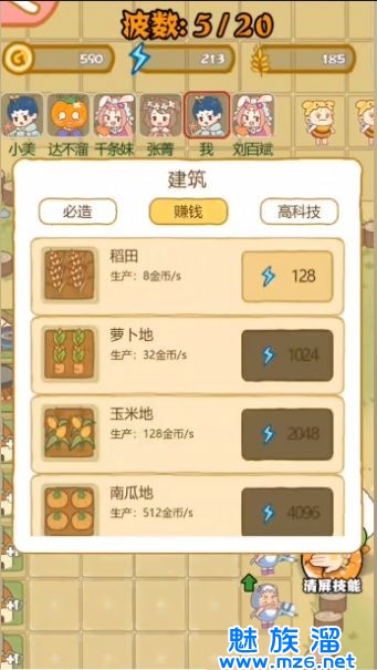 4、玩家可以自由升级自己的农场,产生更多的金币,这样就可以放置更多的塔楼和升级。