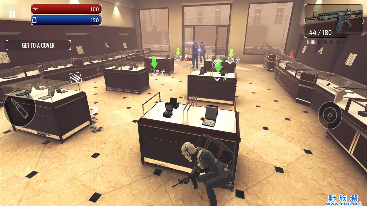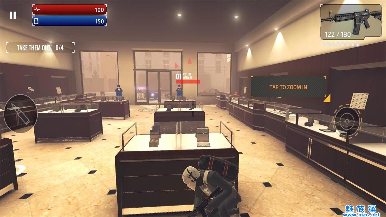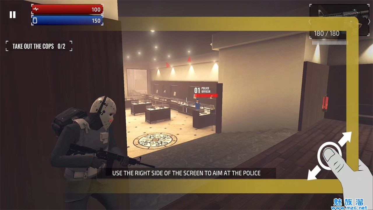 payday既视感。但是是款单机手游并不可以和游戏玩家相互作战。这就失去抢劫银行的关键原素。