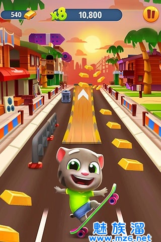 卑鄙的浣熊贼偷走了金子!玩家可以夺回金条,为会说话的汤姆猫家族建造并升级神奇的家园!完成的家园将解锁可供玩家探索和跑酷的新场景!赶快开心跑酷吧。