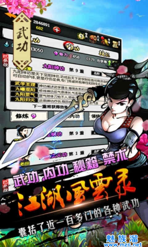 江湖名侠悉数登场,酒馆招募与群侠结义共闯江湖,各种武学神功千变万化,战斗阵型即时变换,百余侠客尽显江湖奇缘,激活缘分飙升战力,百余种武学BUFF相生相克,策略战斗指尖胜负。