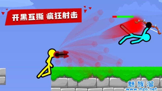 1.玩家在游戏中操控一个火柴人,利用简单的横版摇杆操作操控火柴人进行热血格斗。