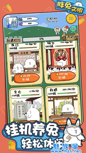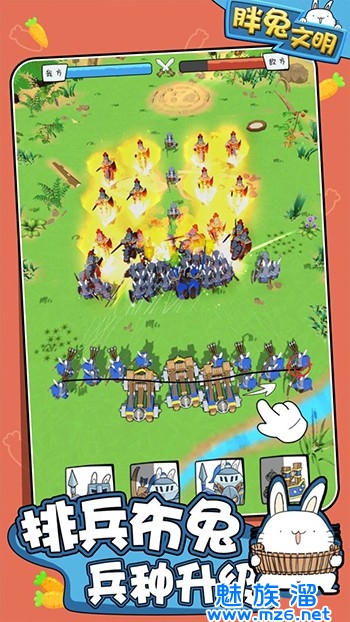 《胖兔文明1.4.7版本》是一款模拟经营类游戏,《胖兔文明1.4.7免广告》玩家将扮演胖兔子boss,通过放置获得金钱升级兵种,创建一个属于自己的国家,保护自己的领地,不被别人抢先。