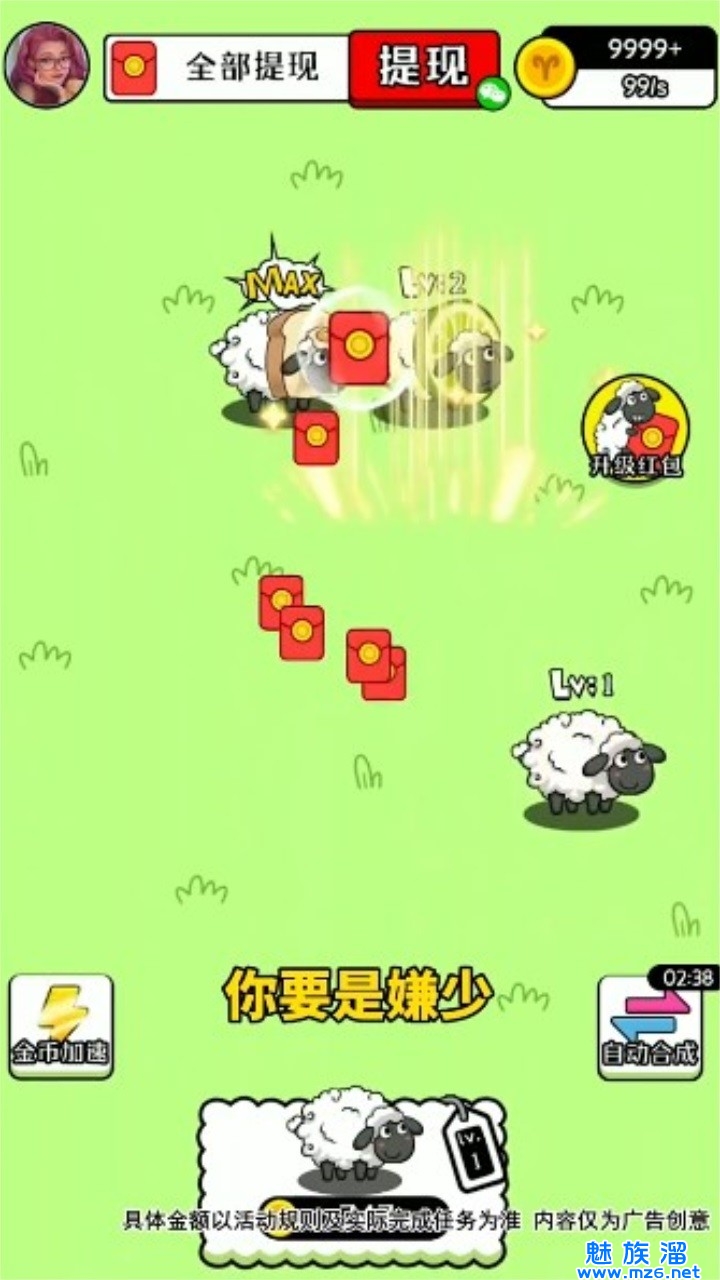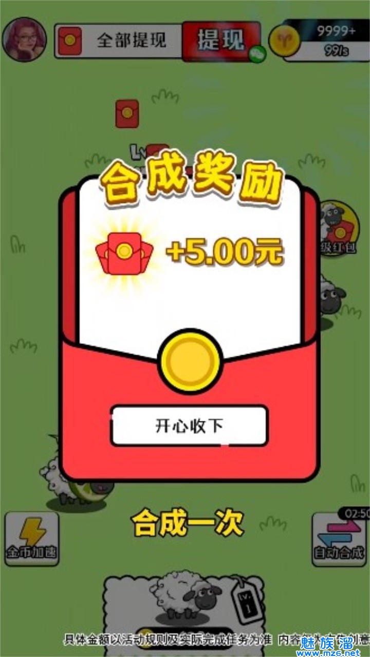 3.通过小羊合并的方式,就可以在游戏里获取不同的养成奖励。