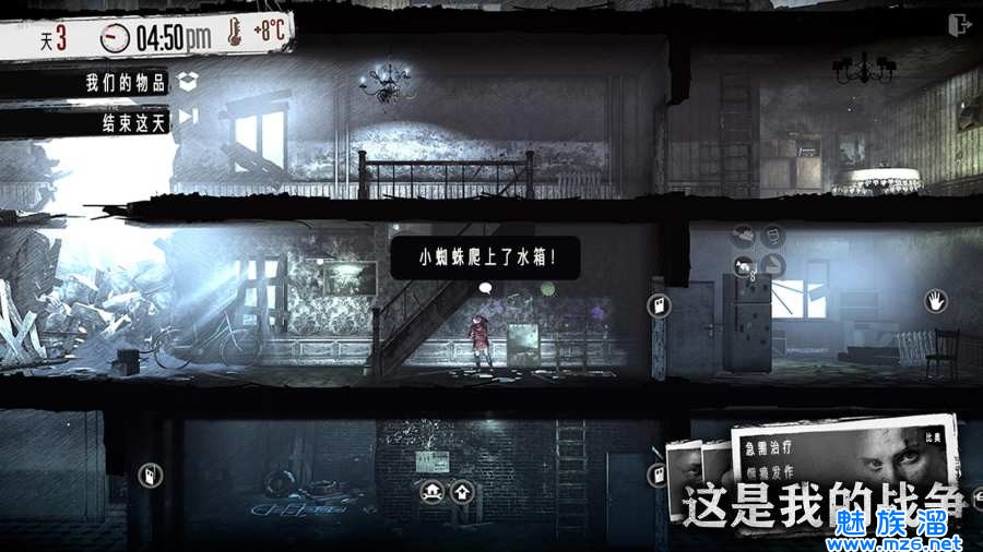 《这是我的战争手游》是一款战争时期角色扮演手游。《这是我的战争手游免费中文版》中采用十分逼真的游戏画面,加上仿真级别的音效,给玩家一种身临其境的感觉。玩家要利用一切可以利用的资源生存下去,在城市的废墟中寻找食物、武器、备件等可以利用的物品。
