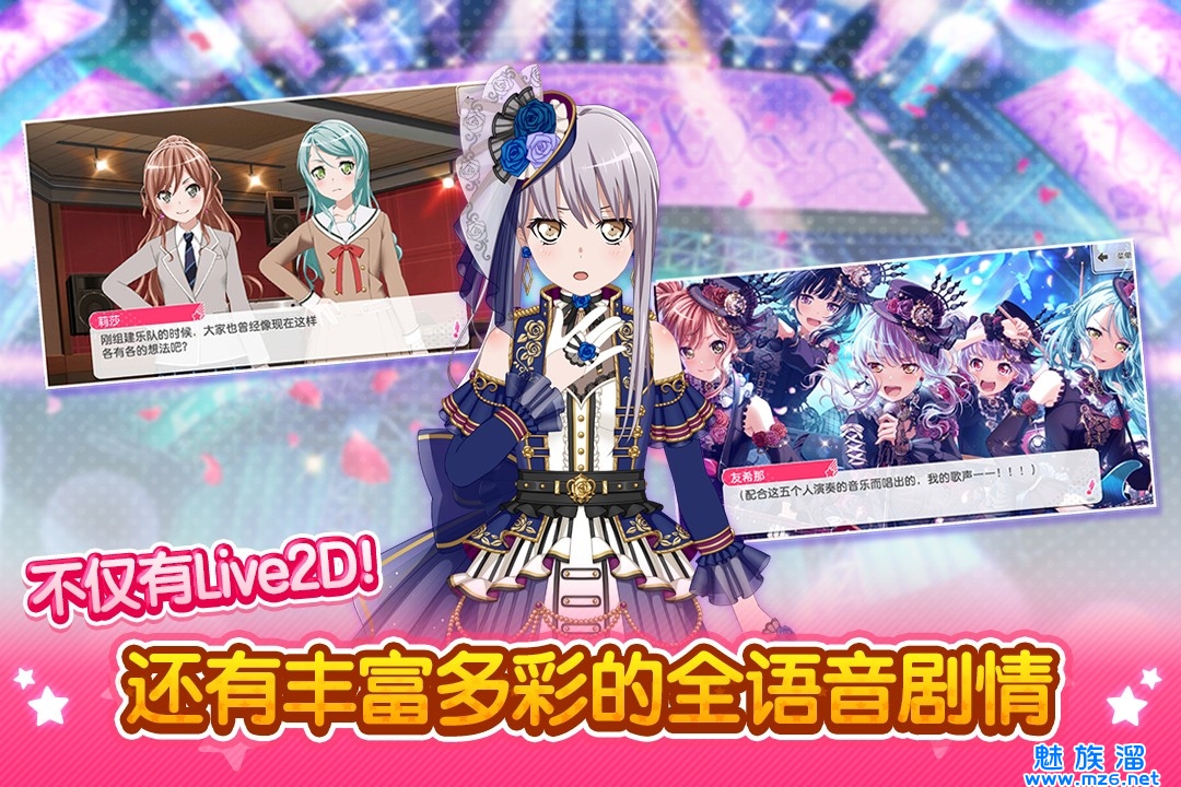 1.独特的二次元动漫游戏风格,少女乐队的成员们都很可爱,q版形象的版本,看起来很可爱。