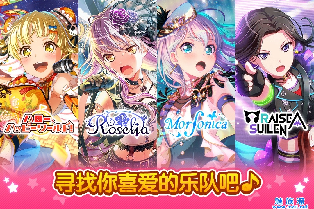1、游戏中共有5支风格独特的少女乐队登场: