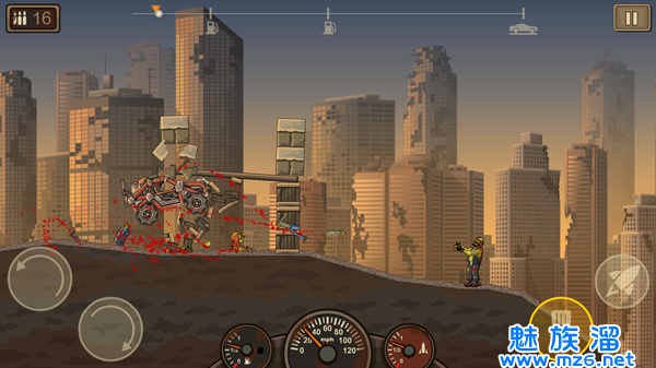 巧妙融合不同元素,驾驶车辆穿越大荒原,加速前进躲避僵尸攻击。