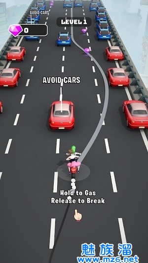 点击屏幕开始游戏,辅助路径会左右移动,操作非常简单。