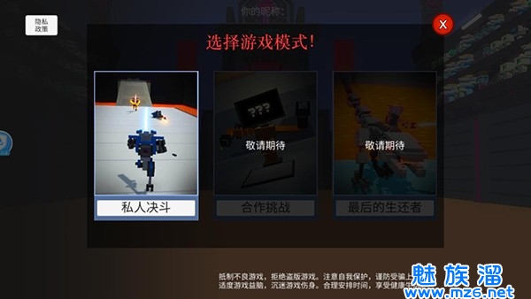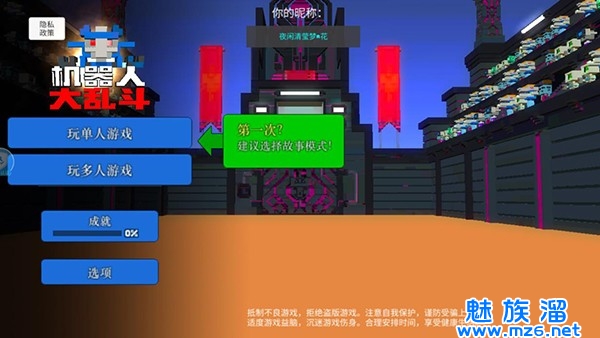 1、下载安装机器人大乱斗手机版中文最新版并且进入游戏,可以看到单人和多人游戏供你选择;