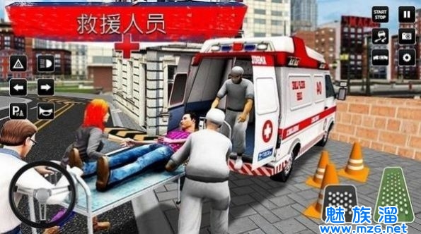 2、进入游戏之中,驾驶你的救护车前往各种的区域,救援各种人群。