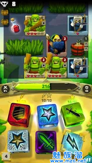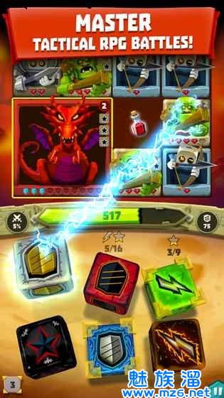3、游戏的骰面有分为剑、盾、闪电、星星四种,剑对应攻击,盾对应防御