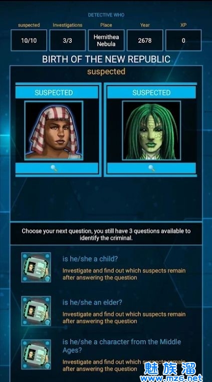 2、你有有限的问题和一定数量的嫌疑人来猜测罪魁祸首。