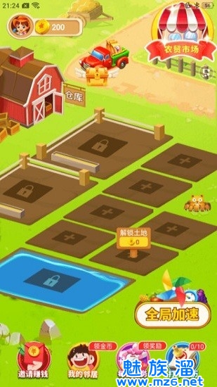 在游戏中种植各种农作物,等他们长大就可以去贸易市场金币,获取红包奖励。