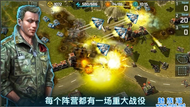 战争策略手游,游戏玩法可以多人一起抗衡,游戏场景多样,音效逼真,还有丰富的武器可以选择。你必须与PvP战斗中的其他玩家战斗,发明新的战斗策略,发展你的胜利策略,升级步兵,坦克,陆地车辆,海军和空军,以争夺敌人在战斗中的霸主地位。而且拥有职业转换系统,玩家可以培养英雄的战斗力去征战,统治整个游戏世界。可自由的选择武装群组,体验实时竞技战场!