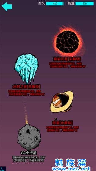 3、无尽的冒险玩法,你将会遇到各种类型的星球,不断的收集物资;