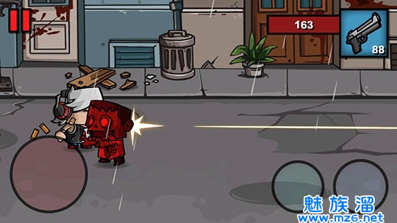 画面血肉横飞。背景僵尸末日。全程无脑突突突。移动键操作不是很舒服。游戏没有过多的亮点。就是游戏角色挺多。可以让AI跟你一起打。AI感觉比自己厉害好多。