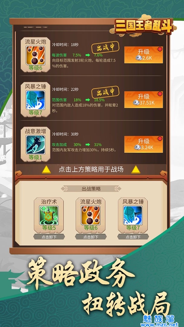 三国乱斗王者是一款挂机放置类型的休闲益智手机游戏,三国乱斗王者游戏采用经典的中国古代三国题材作为游戏特色,以独特的策略战术放置作为游戏的主要玩法。三国乱斗王者在游戏中,玩家可以自由挑战沙盘,三国乱斗王者更有多人竞技模式等待玩家体验,玩家可以邀请上自己的小伙伴一同来并肩作战!