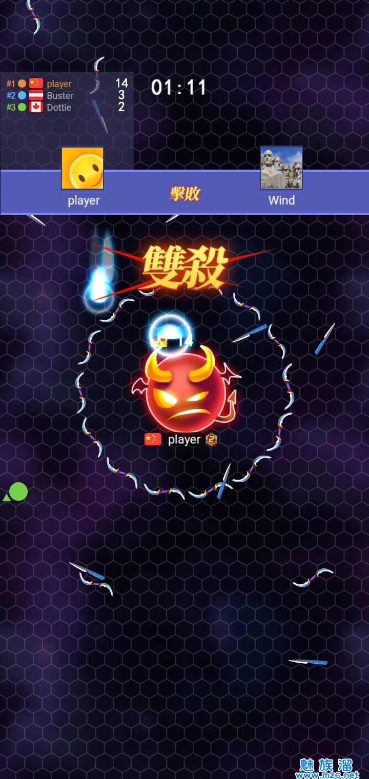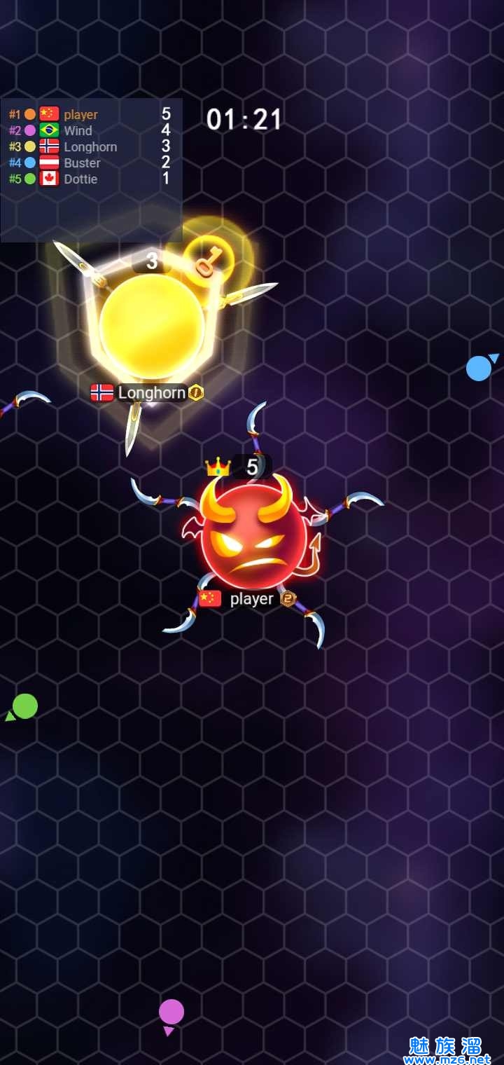 加入了排行榜的玩法和其他的玩家展开比拼。吃球:吃球成长,不停的走位,躲避对手的挥刀。