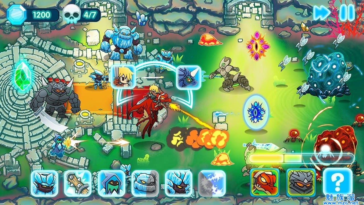 招募英雄和士兵、建造防御塔、使用魔法和各种道具、灵活选择局内技能形成build套路,在100多个关卡中消灭一波又一波的敌军威胁。