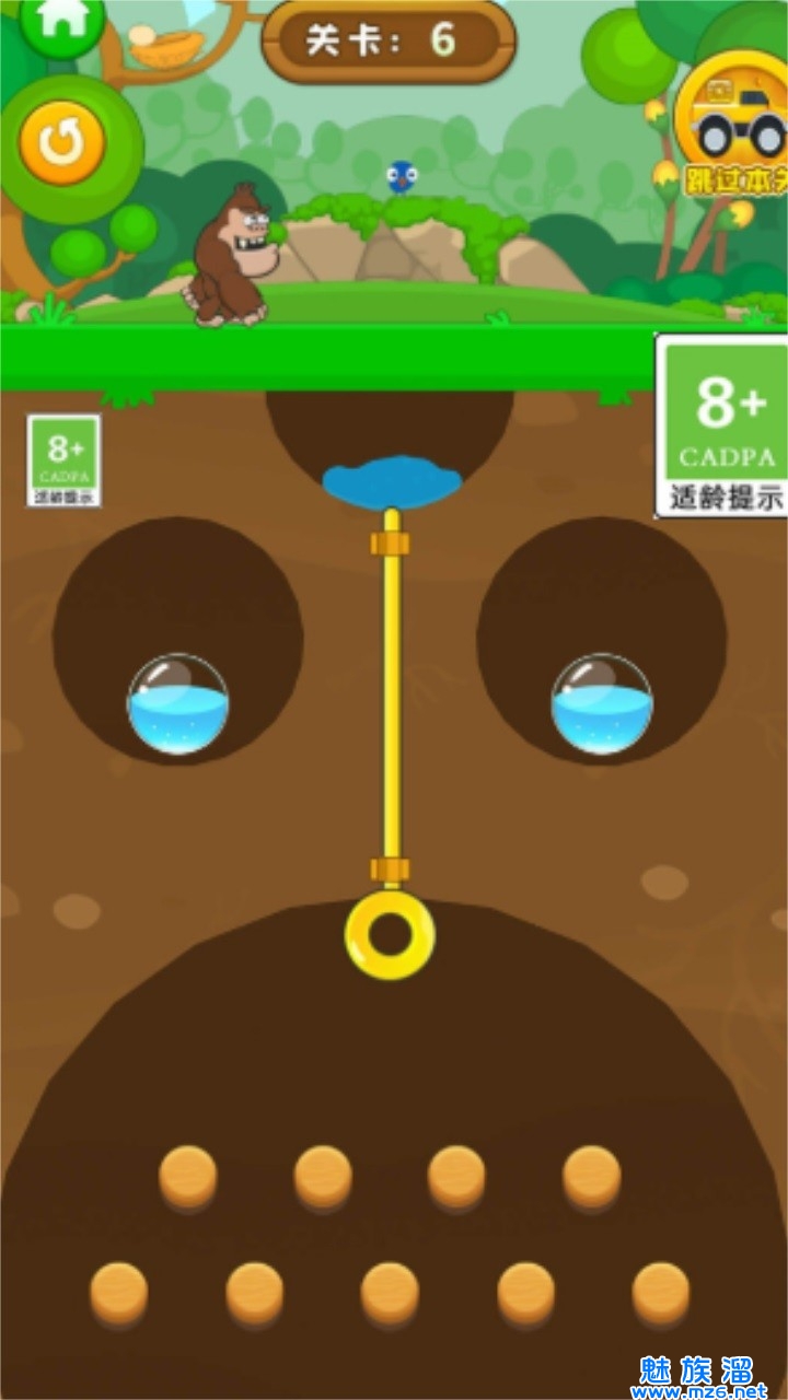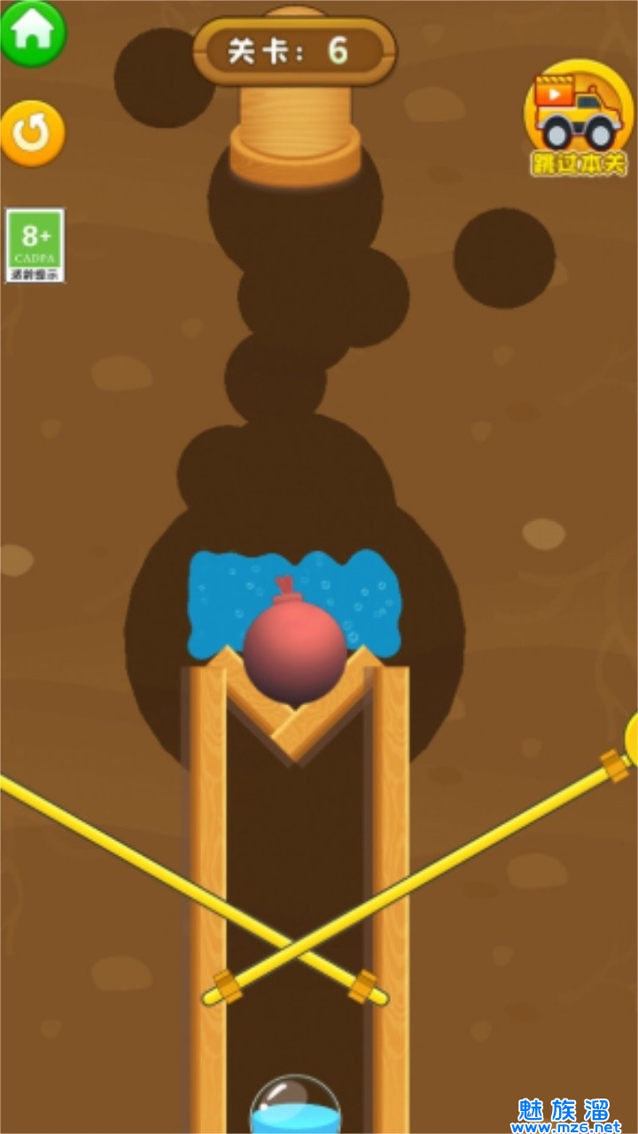 1、简约卡通风格,创意想法想出最佳的营救方案,开启不同的拉针机关;