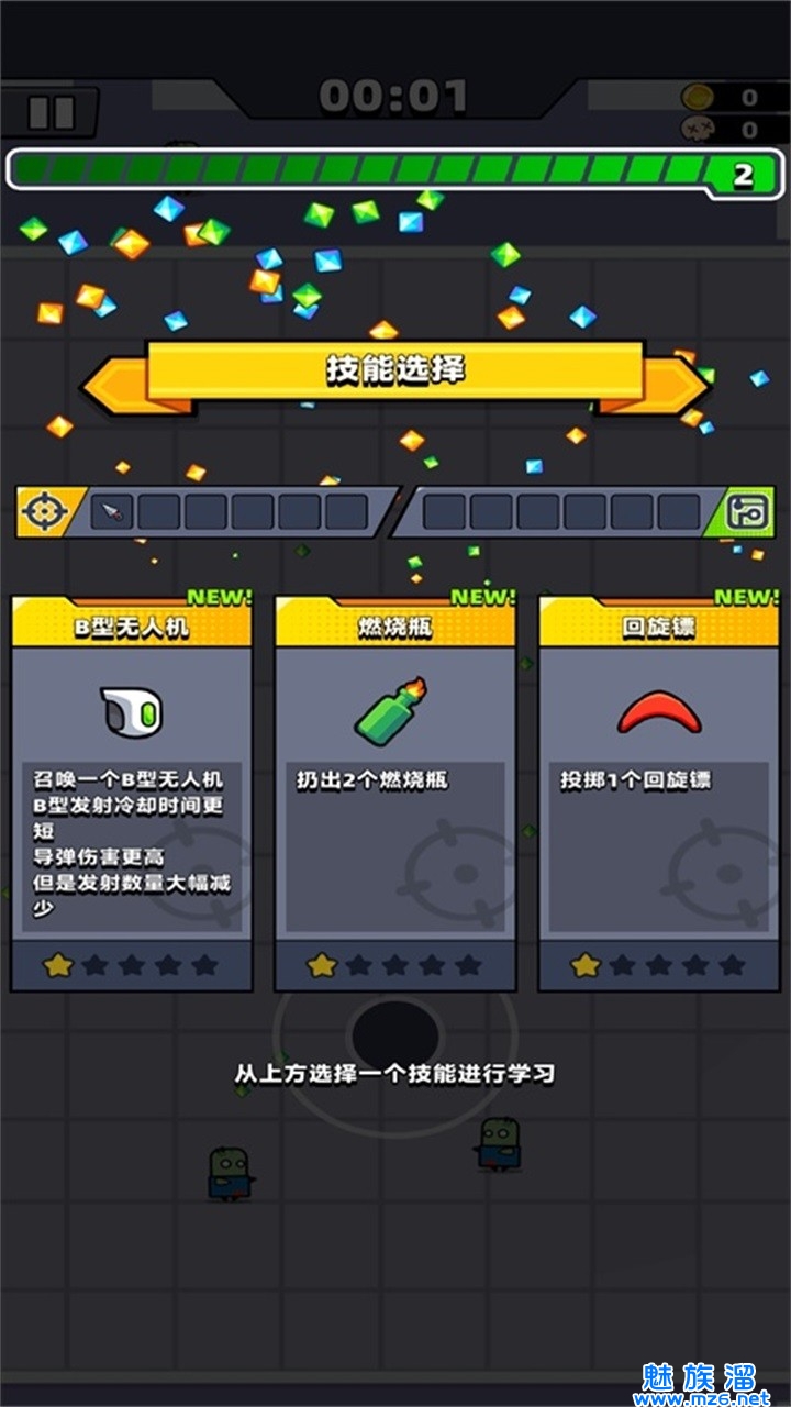 3.刺激的游戏玩法,选择不同的天赋,消灭僵尸,赢取胜利。